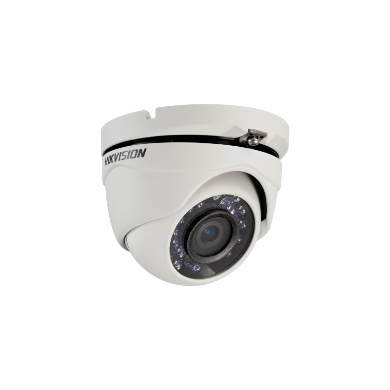 Cámara Turret Hikvision de la gama Value, resolución 1080p, lente de 6 mm, salida de vídeo de 4 señales en 1: HDTVI, HDCVI, AHD y CVBS, estructura impermeable con protección IP67, dispositivo con Smart IR para alcance de 25 metros, sensor CMOS de alto rendimiento, menú OSD remoto, carcasa de metal, adecuada para instalaciones interiores y exteriores.