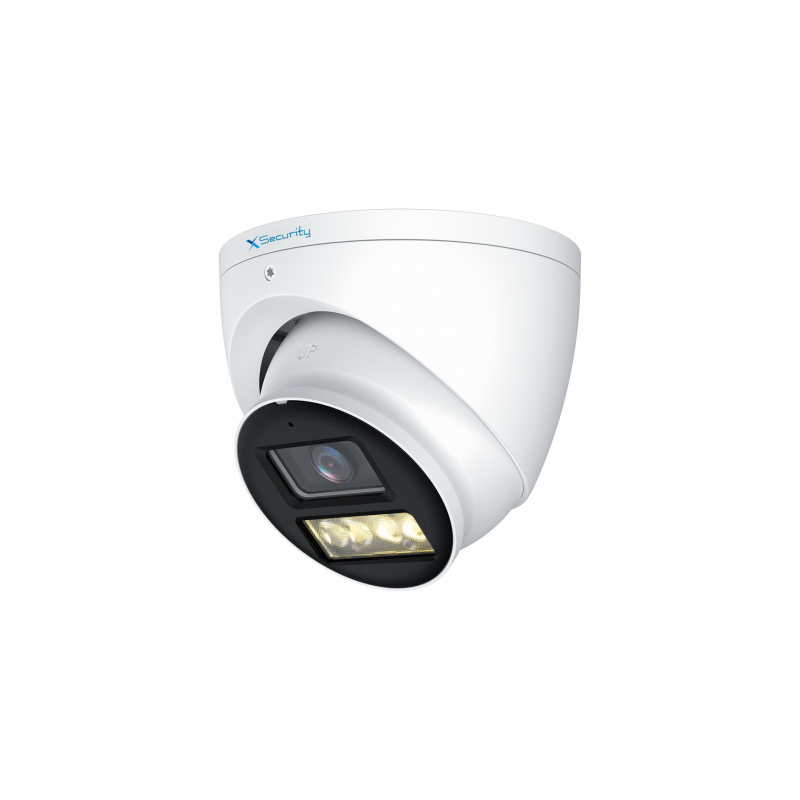 Cámara turret X-Security, resolución 5 Mpx, lente 2.8 mm, luz híbrida alcance 40 metros, micrófono integrado, impermeable IP67.