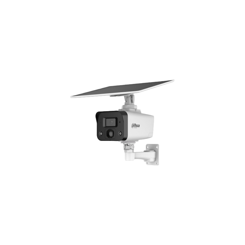 Cámara IP 4G Dahua Wireless Series con panel solar integrado, ofrece vídeo de 4 megapíxeles a 15 imágenes por segundo, ICR, sensibilidad de 0,01 lux, infrarrojos de 30 metros y luz blanca de 20 metros, óptica fija de 3,6 mm con ángulo de visión de 78,4 grados, DWDR, 3DNR y Smart Dual Light para adaptabilidad a cualquier escena, incorpora detección PIR y SMD, audio bidireccional, entrada y salida de alarma por eventos, almacenamiento en tarjeta MicroSD hasta 512 GB, conectividad 4G LTE, funciones inteligentes mediante P2P y aplicación DMSS, batería LiFePO4 de 64 Wh combinada con panel solar de 10,5 W, protección ambiental IP67 y alimentación de 12V CC o USB-C.