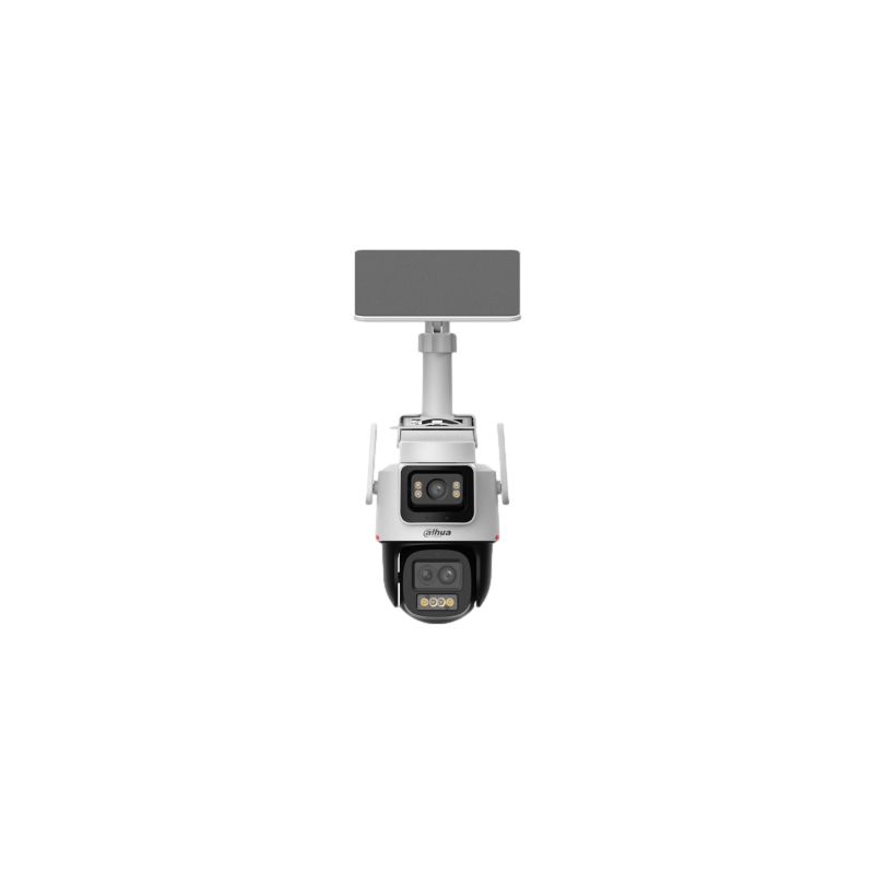 Cámara IP PT híbrida Dahua WizColor de 3+3MP con doble sensor fijo y PT, incorpora zoom híbrido 6x y enfoque automático, integra tecnología WizColor y Auto Tracking Lite, permite disuasión activa mediante luz y sirena, IA SMD 3.0 con detección humana y de vehículos, comunicación bidireccional gracias a micrófono y altavoz, alimentada por batería de litio de 65 Wh y panel solar de 8 W, cuenta con conectividad 4G y almacenamiento local, protección IP66.