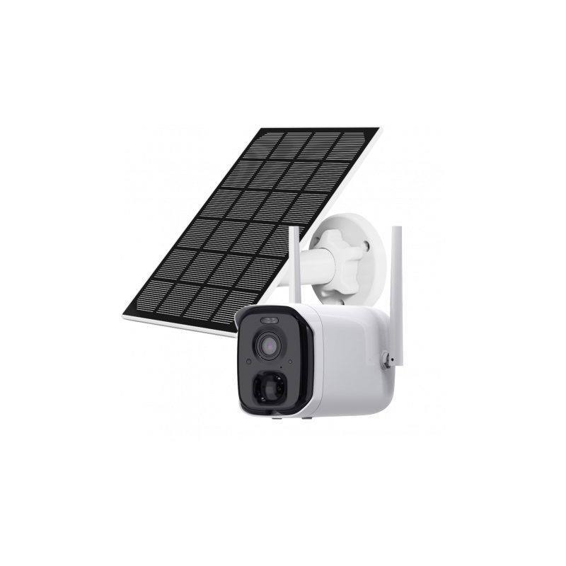 Cámara IP exterior VicoHome de 4 megapíxeles, alimentación por batería recargable de 9000 mAh y panel solar monocristalino de 5W. Conexión wifi de 2,4 GHz, sensor CMOS de 1/3 de pulgada, vídeo en 2560 x 1440, compresión H.264 y H.265, lente de 2,97 mm, visión horizontal de 92 grados, visión diagonal de 123,6 grados. Iluminación mínima de 0,01 lux, infrarrojos hasta 7 metros, LED blanco para disuasión y vigilancia nocturna en color, detección mediante sensor PIR real activando grabación inteligente de vídeo. Sistema de audio bidireccional con micrófono y altavoz integrados, ranura microSD para grabación local hasta 128 GB, notificaciones automáticas para detección de movimiento y acceso remoto a través de la app VicoHome. Servicio en nube gratuito con grabación limitada, detección inteligente de personas, vehículos, mascotas y paquetes bajo suscripción, compatible con Alexa, impermeable IP65, adecuada para interior y exterior.