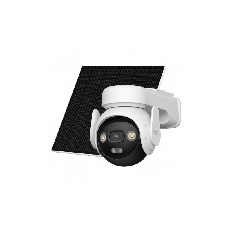 Kit de cámara a batería AOV PT PRO de 5 megapíxeles, conectividad 4G y WiFi, batería recargable de 10.000 mAh, incluye panel solar de 5 W, lente de 3,6 mm, seguimiento automático de personas, tecnología Aurora Full-color para visión nocturna en color, audio bidireccional, sirena con flash azul y rojo, detección de personas por inteligencia artificial IMOU SENSE, tarjeta microSD de 32 GB incluida, apta para uso exterior con clasificación IP66.
