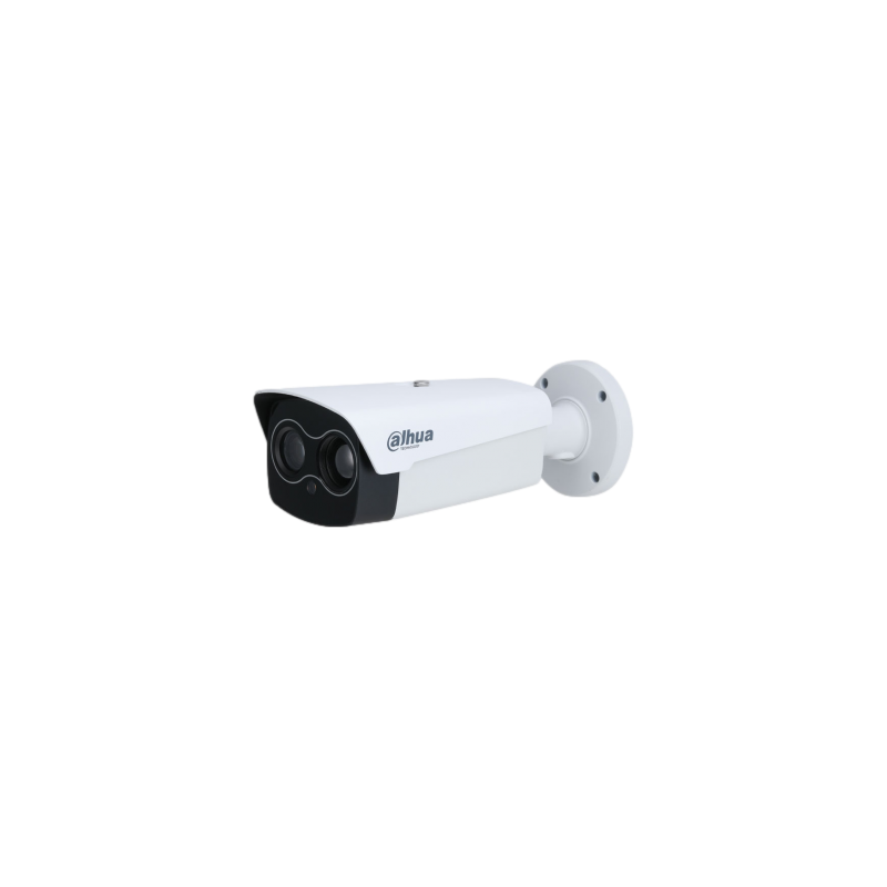 Cámara híbrida térmica/visible con doble óptica fija (25 mm térmica, 12 mm visible), WDR y reducción 3D de ruido digital. Detección de temperatura y h