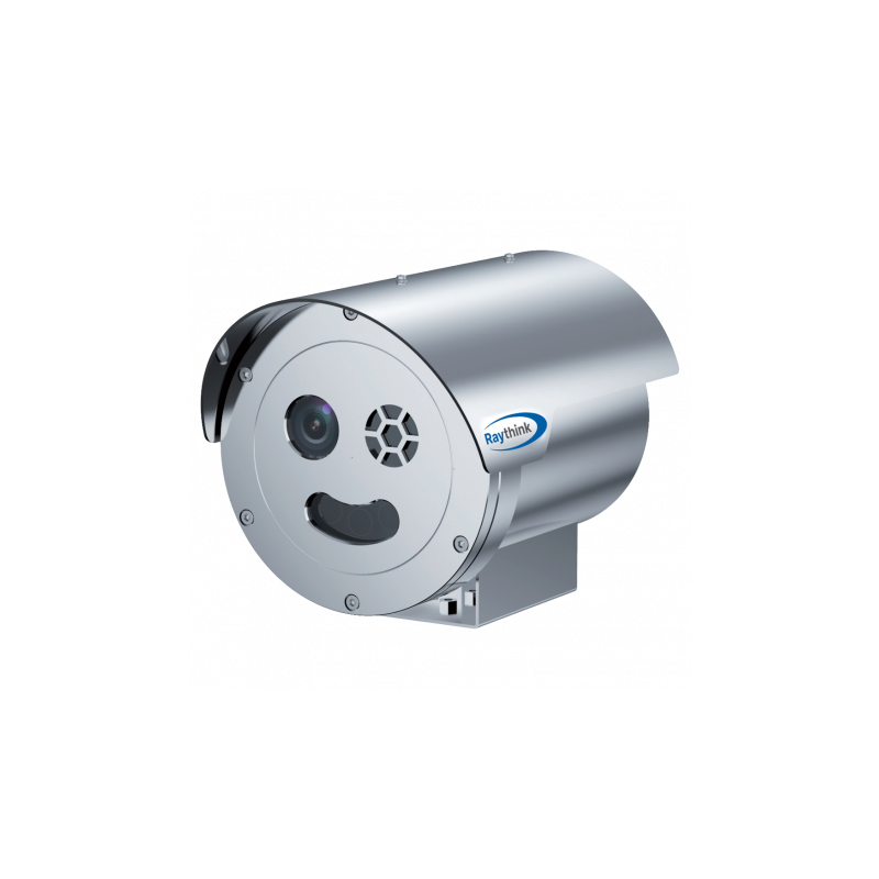 Cámara térmica IP Raythink TE365 ATEX series, sensor térmico VOx FPA 640 x 512, tamaño de pixel de 12 micrómetros, lente térmica de 9 milímetros, sensor visible CMOS 1/2.8 pulgadas de 5 megapíxeles con lente de 13 milímetros, sensibilidad térmica menor o igual a 40 mK, rango de medición de temperatura de menos 20 a 550 grados Celsius con precisión de más o menos 2 grados Celsius o 2 por ciento, detección preventiva de incendios e intrusión, compresión de vídeo H265 y H264, interfaz de red Ethernet de 10 a 100 BaseT, comunicación RS485, alimentación DC de 12 V más o menos 25 por ciento, reducción de ruido 2D y 3D, dispone de alarmas, audio y ranura para tarjeta MicroSD de hasta 256 GB, acceso por interfaz web, VMS y NVR, compatible con ONVIF, carcasa anti explosión con protección IP68.