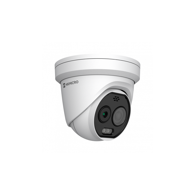Cámara térmica dual IP, sensor térmico 256x192, óptico 5 MP, lentes 2.1 y 2.2 mm, IR hasta 30 metros, detección preventiva de incendios.