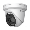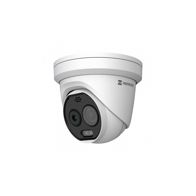 Cámara térmica Dual IP con sensor térmico de 160 x 120, tecnología VOx, lente térmica de 6,9 mm, sensor óptico CMOS de 1/2,7 pulgadas con 5 megapíxeles, lente visible de 8 mm, sensibilidad térmica de hasta 25 mK, rango de medición de la temperatura de -20 a 150 grados Celsius con precisión de 8 grados Celsius, detección preventiva de incendios y alarma, detección de movimiento, ranura para tarjeta MicroSD de hasta 512 GB, grado de protección impermeable IP67 y protección contra sobretensiones.