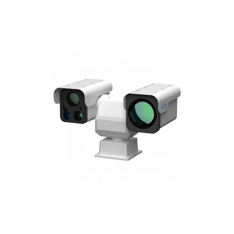 Cámara térmica IP PTZ dual de la serie PC5 de Raythink, equipada con sensor térmico 1280x1024 VOx sin refrigerar de 12 micras, sensibilidad térmica inferior o igual a 40 mK a 25°C F#1.0 25Hz, y sensor visible CMOS de 4 megapíxeles 1/1.8 pulgadas. Incluye lente térmica motorizada AF de 30 a 150 milímetros, zoom óptico 5X, y lente óptica de 10 a 550 milímetros, con zoom óptico 55X. Permite identificación de personas, vehículos, embarcaciones, humo y focos de incendio, empleando tecnología NPU para procesamiento inteligente de imagen con IA. Dispone de modos de patrullaje para vigilancia continua, con opciones de telémetro e iluminación láser. Almacenamiento interno por tarjeta MicroSD, ethernet, compatibilidad ONVIF y protección IP66.