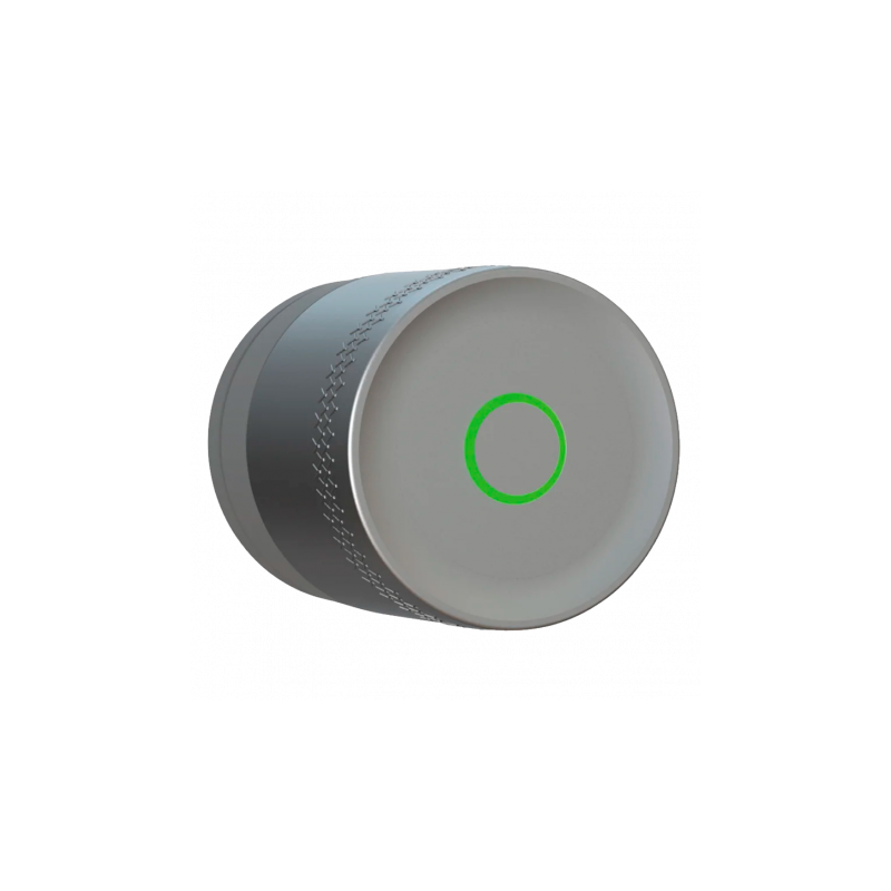 Cerradura girallaves inteligente Bluetooth, invisible desde el exterior, instalación en superficie sin manipular la puerta, compatible con cilindros europeos de terceros y modelos YALE-CYLINDER-x, admite gestión de usuarios invitados y proporciona reportes de acceso, control remoto y notificaciones desde la aplicación Yale Home, integración con Ajax para sincronización de apertura o cierre, alimentación por tres pilas tipo CR123A con duración de hasta 2 años usando solo Bluetooth, indicador de estado de las baterías, cierre automático configurable, compatible con asistentes virtuales Google y Alexa, apertura sin contacto mediante APP, NFC a través de Yale Dot o proximidad, acabado en color plata.