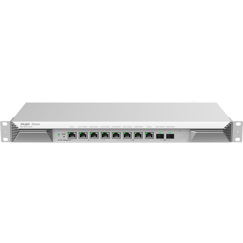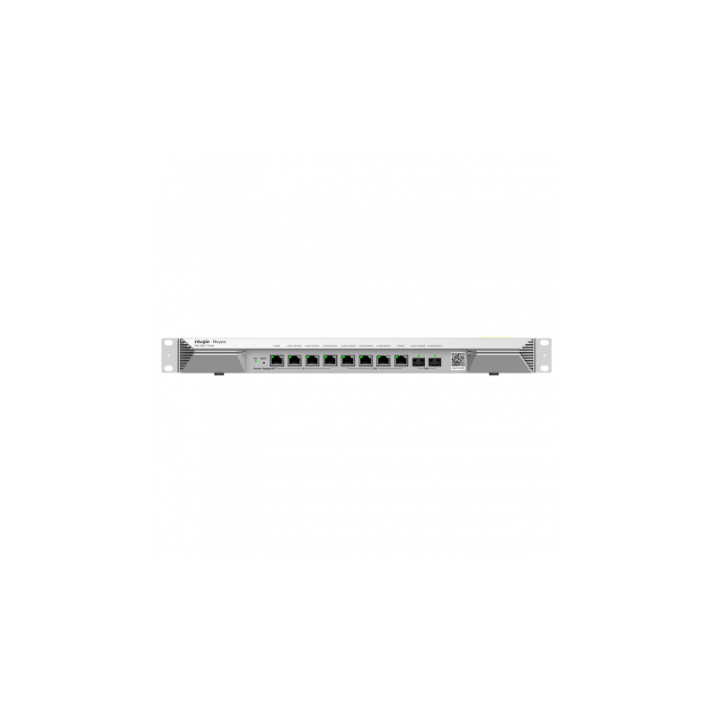 Router Cloud inteligente Reyee con 8 puertos RJ45 gestionables y 2 SFP+ 10 Gigabit, ofrece hasta 7 WAN para failover o balanceo, ancho de banda de hasta 3 Gbps recomendado para hasta 700 usuarios. Incluye funciones básicas de firewall, control de tráfico, inspección y filtrado de paquetes DPI en capa 7, administración intuitiva desde la nube Ruijie sin coste, gestión avanzada de VPN e integración flexible para entornos empresariales exigentes.