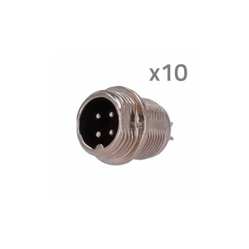 Conector M12 macho de 4 pines para soldar, compatible Streamax, bolsa con 10 unidades, uso en equipos embarcados.