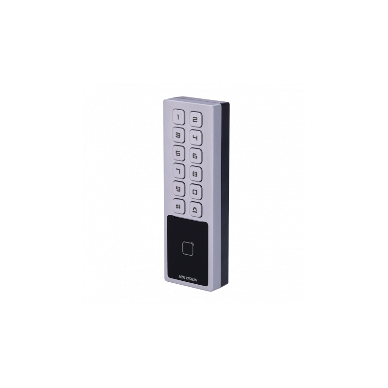 Control de acceso IP65 IK08, hasta 10.000 usuarios, RFID EM 125 kHz, PIN, TCP/IP, WiFi, RS485, controladora integrada Hikvision