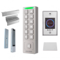 Kit de control de acceso Hikvision, tarjeta MF y PIN, ventosa de 272 kg, soporte en Z, pulsador sin contacto, montaje en superficie.