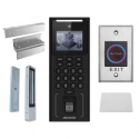 Kit de control de acceso Hikvision, facial, huella, tarjeta MF y PIN, ventosa magnética, montaje en superficie, pantalla de 2.4 pulgadas.