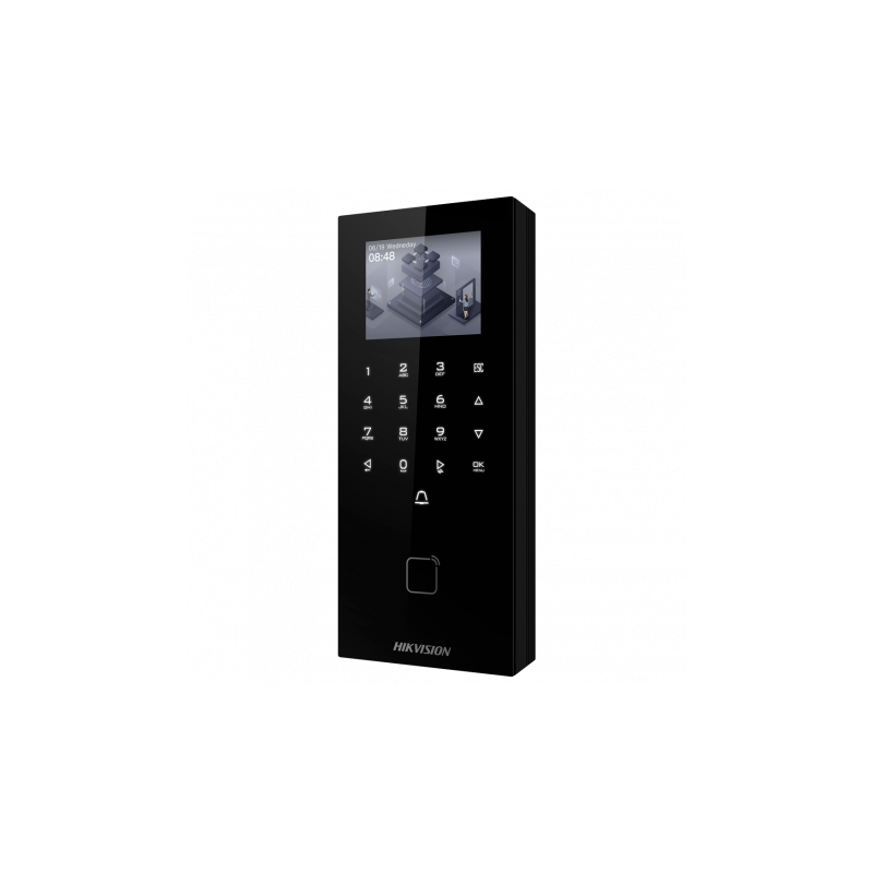 Control de acceso y presencia autónomo para hasta 5.000 usuarios y 150.000 registros, incorpora tecnología PoE y protección IP65 para uso en exteriores. Permite identificación mediante tarjeta MF de 13,56 MHz, contraseña, combinaciones o código PIN. Cuenta con pantalla TFT de 2.4 pulgadas, admite controladora integrada, sensor de puerta, pulsador y relé. Soporta comunicación TCP/IP, USB, RS485 y Wiegand, compatible con iVMS-4200 e Hik-Connect, incluye salida de 12 V para cerradura electrónica. Permite gestión remota de usuarios, horarios y accesos a través de software, funciones especiales, y apertura remota desde la aplicación móvil.