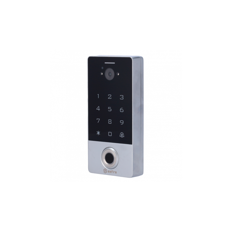 Control de acceso autónomo Safire, videoportero, acceso por huella, tarjeta EM, PIN, APP, WiFi, Wiegand 26, exterior IP66, DC 12 V.
