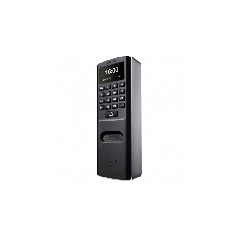 Control de acceso y presencia PoE, identificación por palma, tarjeta EM y PIN, hasta 500 usuarios, pantalla OLED 128x64, IP66, IK10.