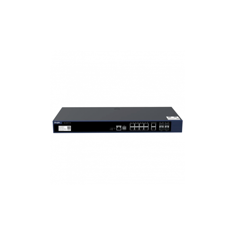 WIS Controladora para puntos de acceso, compatible con APs Ruijie WIS, integra 8 puertos Gigabit, 2 puertos SFP Combo, 1 puerto SFP+, incluye licencia para administrar 32 puntos de acceso, ampliable hasta 1024 puntos de acceso mediante licencias adicionales, soporta hasta 5120 dispositivos Wi-Fi conectados.