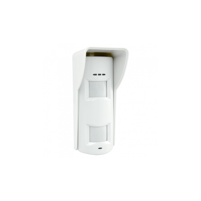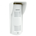 Detector PIR triple tecnología para exterior, inmune a mascotas hasta 10 kg, rango de detección 10 metros, certificado Grado 2, IP55.