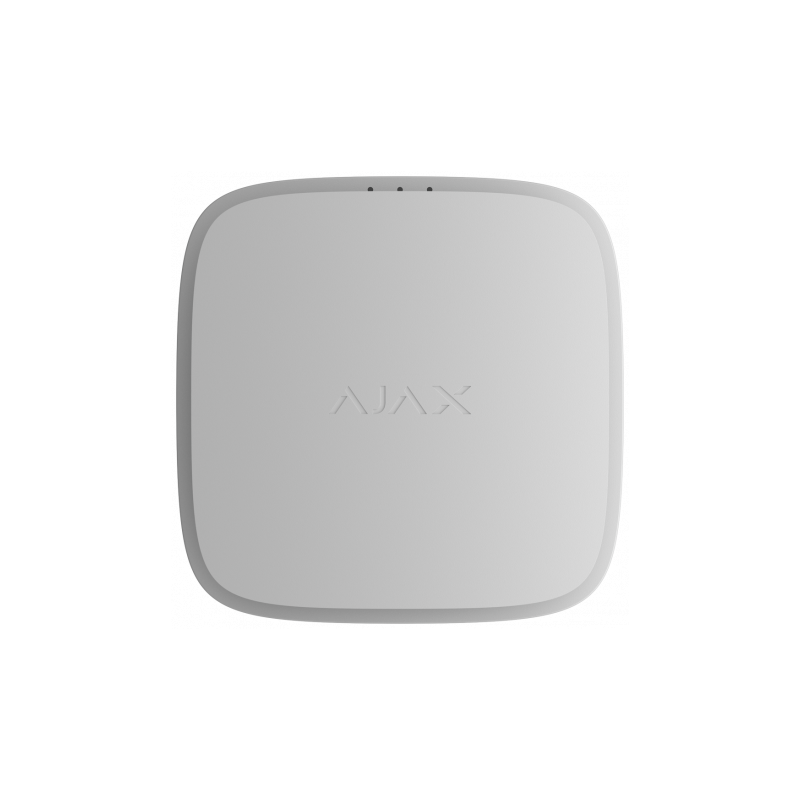 Detector inalámbrico de humo Ajax, certificado según EN 54-7 y EN 54-25, diseñado para detección de incendios rápida y precisa. Incorpora un sensor óptico de doble espectro para distinguir entre humo y partículas atmosféricas, evitando falsas alarmas por vapor de agua. Ofrece detección de pérdida de conexión y protección antisabotaje, transmisión inalámbrica hasta 1.700 metros, control y configuración remotos mediante las aplicaciones Ajax, batería reemplazable con autonomía estimada de hasta 6 años.
