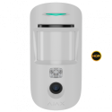 Fotodetector Ajax, resolución VGA, tecnología HDR, rango de detección 12 metros, antimascotas, alcance 1700 metros, uso interior.