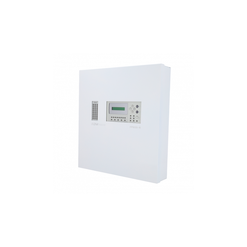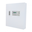 Central de incendios convencional, 32 zonas independientes, 20 salidas configurables, pantalla LCD 2x16, archivo de 1600 eventos.
