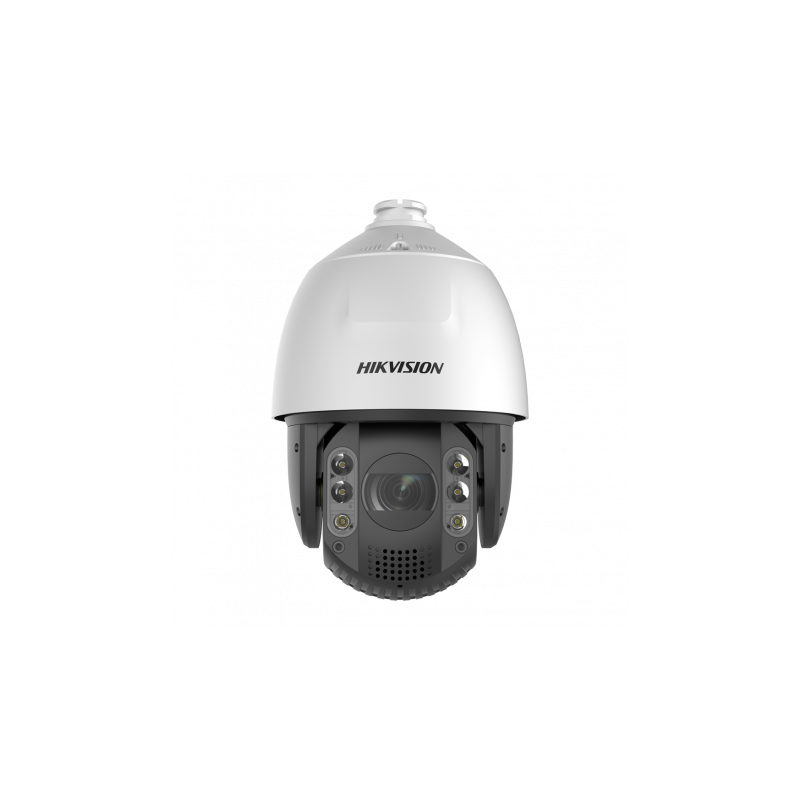 Cámara IP PTZ motorizada Hikvision gama PRO con resolución de 2 megapíxeles, tecnología Ultra Low Light Powered by DarkFighter y AI-ISP, lente varifocal motorizada de 4,8 a 153,6 mm, zoom óptico 32X, detección de movimiento 2.0, AcuSense con filtro inteligente de falsas alarmas para personas y vehículos, Face Capture para hasta 5 rostros simultáneos, conteo regional de personas, smart tracking y micrófono dual integrado. Incorpora audio bidireccional, altavoz integrado, ranura para tarjeta MicroSD de hasta 512 GB, IR de hasta 200 metros, protección IP67, antivandálica IK10, tecnología Hi-PoE y soporte a pared incluido.