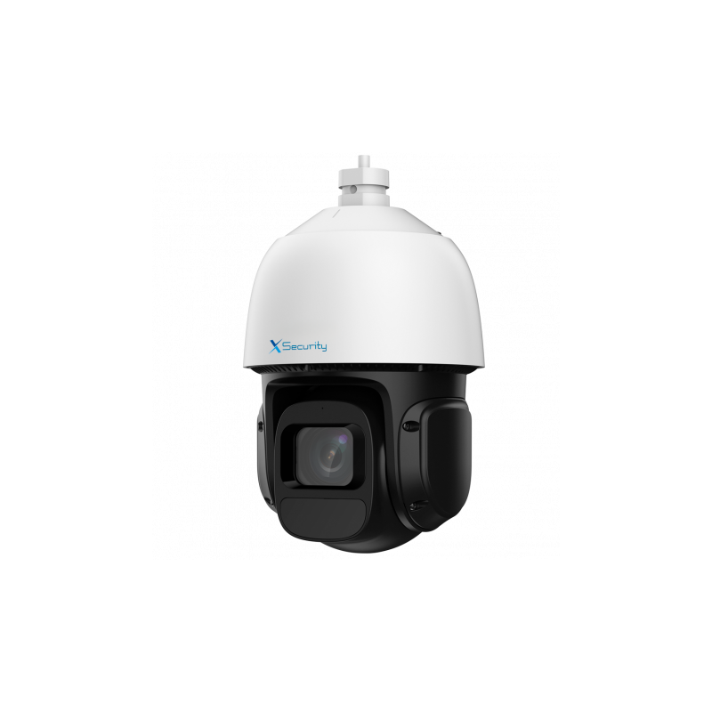Cámara IP PTZ X-Security de gama profesional, resolución de 4 megapíxeles, lente varifocal de 5 a 80 mm con zoom óptico de 16X, iluminación mínima en color de 0,005 lux F1.6, blanco y negro de 0,0005 lux F1.6, visión cero lux con IR. Alcance infrarrojo de hasta 80 metros, filtro mecánico ICR removible y dual light con luz blanca de hasta 30 metros. Permite grabación en tarjeta MicroSD de hasta 256 GB, dispone de tecnología IVS para protección perimetral, SMD 3.0 para búsqueda inteligente y detección avanzada de movimiento, también integra detección facial y función de auto tracking. Compresión Smart H.265+, compatible con ONVIF y múltiples plataformas. Protección contra el agua y polvo IP66, protección contra sobretensiones de 6000 V, dispone de audio, alarmas, interfaz de red RJ-45, alimentación mediante de 12 VDC o PoE+, y soporte incluido.