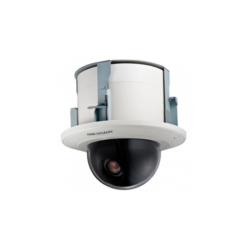 Speed Dome Hikvision gama PRO, domo motorizado HDTVI, CVI, AHD y CVBS con sensor de imagen 1/2.8 pulgadas Progressive Scan CMOS, resolución 1080p de 1920x1080 a 25 FPS, lente varifocal de 4.8 a 120 mm, zoom óptico 25X, zoom digital 16X, iluminación mínima color 0.005 lux a F1.6 y en blanco y negro 0.001 lux a F1.6, ángulo de visión horizontal de 57.6 a 2.5 grados y vertical de 34.4 a 1.4 grados, IR cut, WDR de 120 dB, EIS, máscaras de privacidad de hasta 8 áreas, velocidad de giro hasta 250 grados por segundo, control RS-485 con soporte para protocolos Pelco P, Pelco D y Hikvision, alarmas con 2 entradas y 1 salida, grado de protección contra sobretensiones de 4000 V, apta para instalaciones interiores, encastrable.