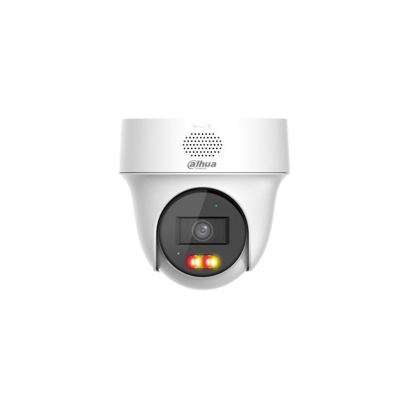 Domo PTZ IP Dahua Entry, 4MP a 25 o 30 ips, compresión Smart H265+ y Smart H264+, óptica fija de 2,8 mm, Smart Dual Light con IR y luz cálida de 30 metros, protección perimetral, detección humana y de vehículos, disuasión activa, audio bidireccional con micrófono y altavoz, protección IP66, alimentación de 12 VCC y PoE.
