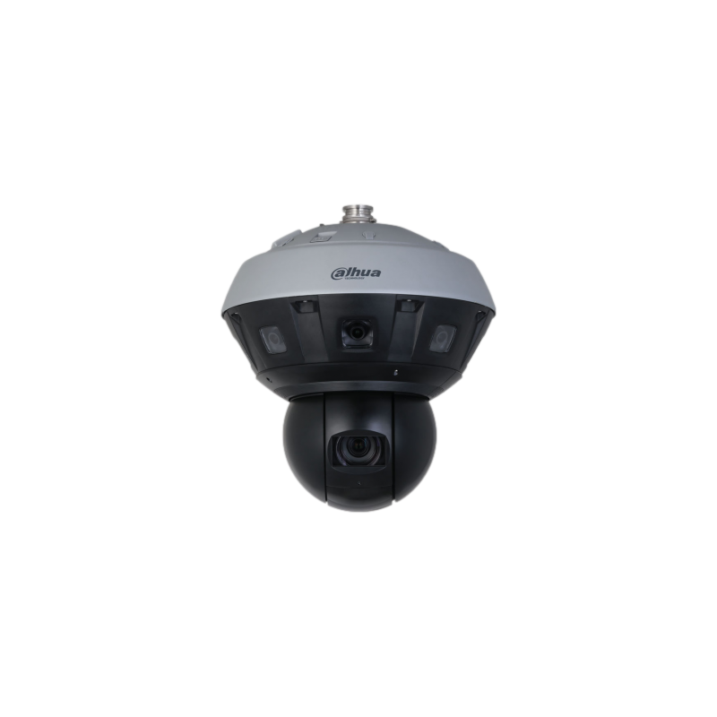 Domo IP PTZ panorámico Dahua WizMind con visión panorámica de 360 grados. Incluye 8 sensores de 4 MP para una imagen panorámica de 32 MP a 25 o 30 imágenes por segundo y un módulo PTZ de 8 MP a 25 o 30 imágenes por segundo. Zoom óptico de 45X, alcance de láser e infrarrojo hasta 500 metros. Rango dinámico amplio de 120 dB en el canal PTZ. Funciones de protección perimetral y reconocimiento facial. Dispone de 7 entradas y 3 salidas de alarma, 2 entradas y 2 salidas de audio, conexión RJ45 Gigabit y puerto SFP. Alimentación de 36 VDC.