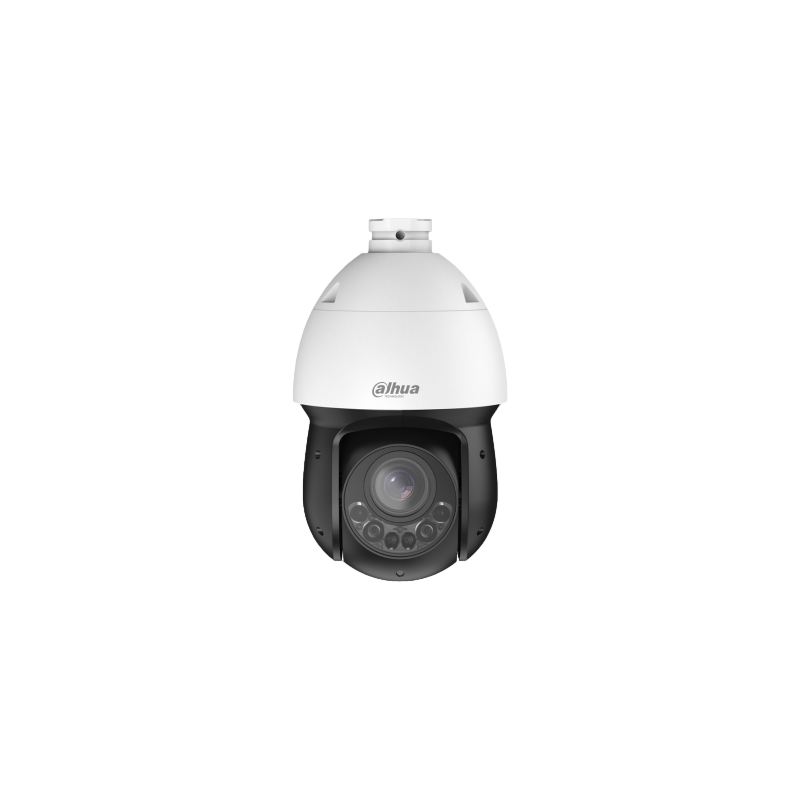 Domo PTZ IP Dahua WizSense de 2 megapíxeles a 50 o 60 imágenes por segundo, zoom óptico 25X con lente de 4,8 a 120 mm, Smart Dual Light con infrarrojos y luz cálida hasta 100 metros, WDR de 120 dB, EIS y Defog, protección perimetral, Auto Tracking 3.0, AcuPick, detección facial y SMD 4.0, 1 entrada y 1 salida de audio, 2 entradas y 1 salida de alarma, ranura MicroSD hasta 512 GB, protección IP67, alimentación de 12 V y PoE+.