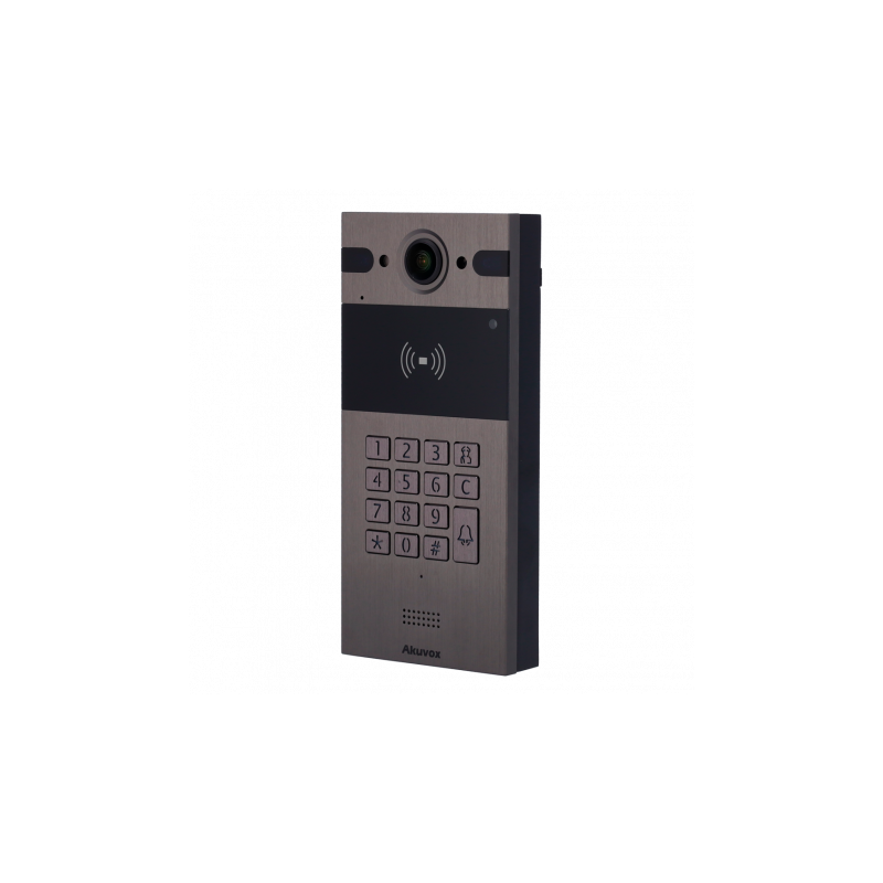 Videoportero IP de superficie con cámara de 4 megapíxeles y lente gran angular para visión en amplios espacios, audio bidireccional para comunicación directa entre visitante y residente, apertura de puerta mediante tarjetas EM y MF, NFC o código PIN, con dos salidas de relé para gestionar hasta dos puertas, integración total con PoE, protocolos SIP estándar y ONVIF, sistema de mantenimiento en la nube y conexión entre placas y monitores a través de la nube sin necesidad de abrir puertos ni VPN, control de acceso avanzado con llaves temporales y PIN, instalación en exteriores gracias a su grado de protección IP65 y estructura de aluminio mecanizado.