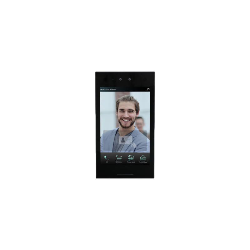 Terminal exterior IP con doble cámara 2MP, pantalla táctil 10,1", reconocimiento facial con detección de vida y almacenamiento local. Capacidad para 200,0