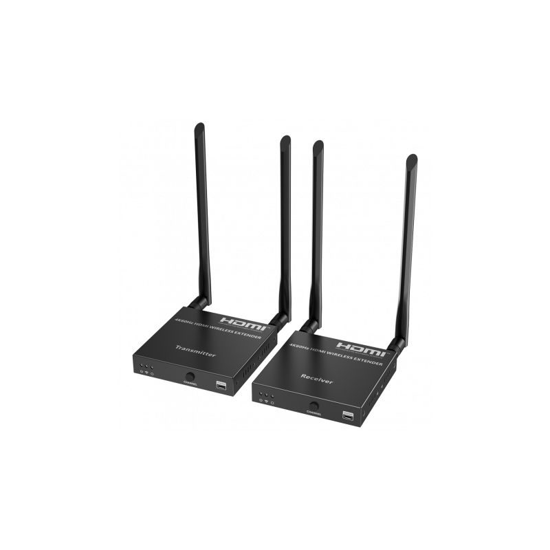 Extensor inalámbrico de señal HDMI, alcance de hasta 50 metros, soporta resolución 4K, permite conexiones de uno a uno entre emisor y receptor. Está diseñado para transmitir señales de audio y vídeo sin pérdidas a largas distancias, ofreciendo soluciones efectivas en salas de reuniones, centros de control, entornos educativos y de entretenimiento. Optimiza la comunicación entre dispositivos, aporta flexibilidad en la instalación y garantiza una conectividad fiable manteniendo la calidad original de la señal.