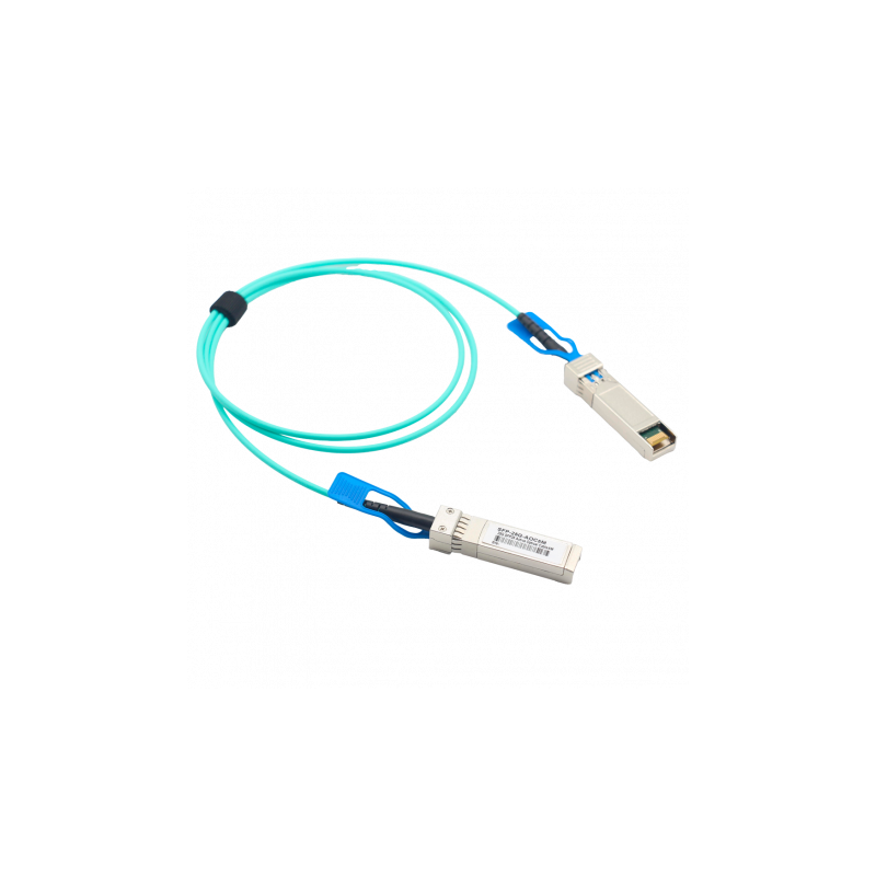 Cable de conexión directa SFP28, diseñado para enlaces de stacking entre switches con módulos SFP28 integrados en ambos extremos, velocidad de 25 Gbps, longitud total de 5 metros, tipo óptico, compatible de forma genérica y con equipos Ruijie.