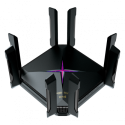 Router WiFi 6 AX6000, doble banda 2,4 y 5 GHz, puertos Gigabit, hasta 384 usuarios, alimentación DC 12 V 2 A, color negro.