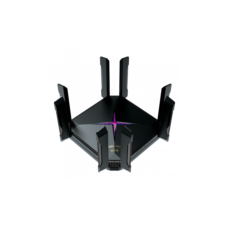 Router Gigabit Mesh WiFi 6 AX6000 Reyee, doble banda de 2,4 y 5 GHz con tecnología 802.11ax, ideal para pequeñas oficinas y trabajo desde casa. Ofrece hasta 6000 Mbps, equipado con 8 antenas externas omnidireccionales y chipset Quad-Core de 2,0 GHz, mejora la cobertura con soporte hasta 384 clientes concurrentes y tecnología Mesh para roaming y señal en todo el espacio. Sus puertos incluyen cuatro RJ45 de 10, 100 y 1000 Mbps, un RJ45 de 10, 100, 1000 y 2500 Mbps, admite agregación Dual-WAN y Dual-LAN para una conectividad por cable estable y rápida. Dispone de control parental, limitación de ancho de banda, modos de encriptación WPA3 y VPN integrados, incluye puerto dedicado gaming con Game Turbo para baja latencia en juegos y streaming en alta definición.