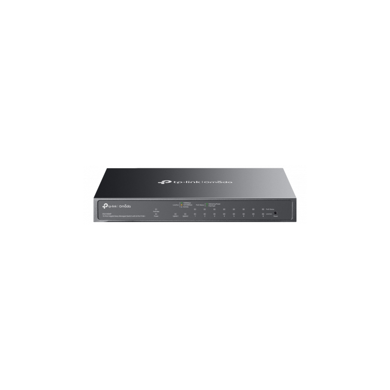Switch Gigabit gestionado con 10 puertos, 8 PoE+ de hasta 30 W, capacidad de conmutación de 20 Gbps, gestión en la nube con Omada, diseño sin ventilador.