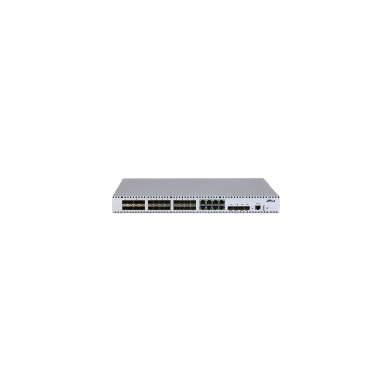 Switch gestionable L2+ con 24 SFP 1G, 8 RJ-45 1G, 4 SFP+ 10G. VLAN, STP/RSTP/ERPS, QoS, ACL y gestión DoLynk/WEB/SNMP. Alimentación redundante.