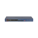 Switch gestionable de 24 puertos PoE Fast Ethernet, 2 combo RJ45/SFP, PoE BT hasta 90 W por puerto y administración local o en la nube.