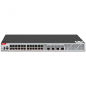 Switch gestionable Ruijie con 24 puertos PoE Gigabit, 4 SFP+ de 10 G, gestión cloud, AC de 100 a 240 V, instalación en rack o escritorio.