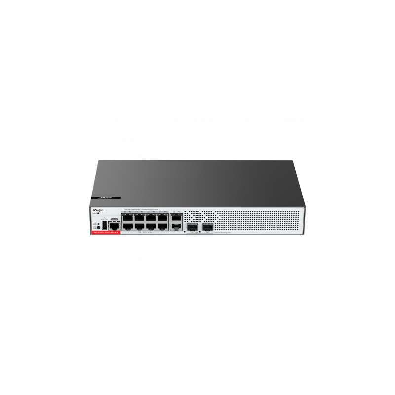 Switch PoE gestionable en la nube Ruijie. 10 puertos RJ45 Gigabit Ethernet y 2 puertos SFP de 2,5 Gigabit. Ocho puertos PoE+ con una potencia total de hasta 125W proporcionan alimentación directa a dispositivos como cámaras, puntos de acceso Wi-Fi y teléfonos IP, facilitando la instalación y reduciendo la necesidad de cableado adicional. El switch integra L2+, funciones VLAN, QinQ, STP, RSTP, ACL, QoS, RIP y rutas estáticas, brindando robustez y flexibilidad en redes empresariales. Capacidad de enlace múltiple LACP, DHCP Snooping, IGMP Snooping, autenticación 802.1x y monitorización SNMP, ideal para despliegues escalables y seguros. Diseño enrackable.