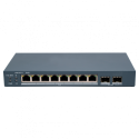 Switch PoE gestionable Hikvision, 8 puertos RJ45 10/100/1000 Mbps, 2 SFP, PoE hasta 80W, alcance PoE hasta 300 metros.