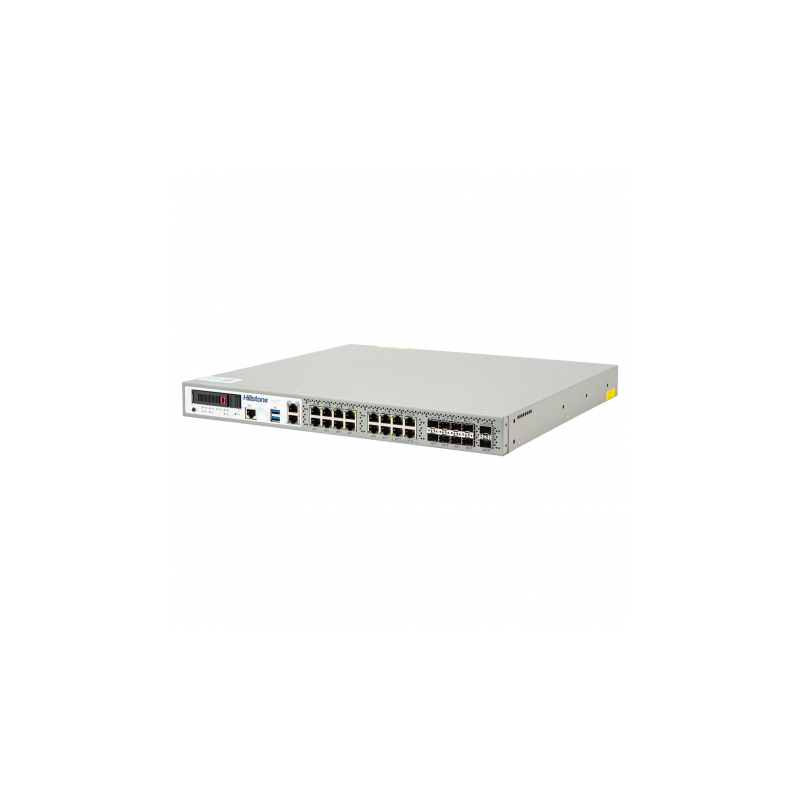 Hillstone NGFW, rack 1U, throughput de 20 Gbps, 16 GE, 8 SFP, 2 SFP+, expansión hasta 1.92 TB, AC de 100 a 240 V.