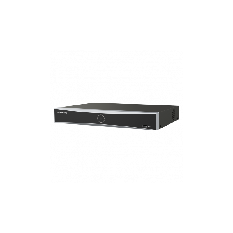Grabador NVR Hikvision de 8 canales IP, máxima resolución 12 Mpx, AcuSense, AcuSearch, reconocimiento facial, ancho de banda 80 Mbps.