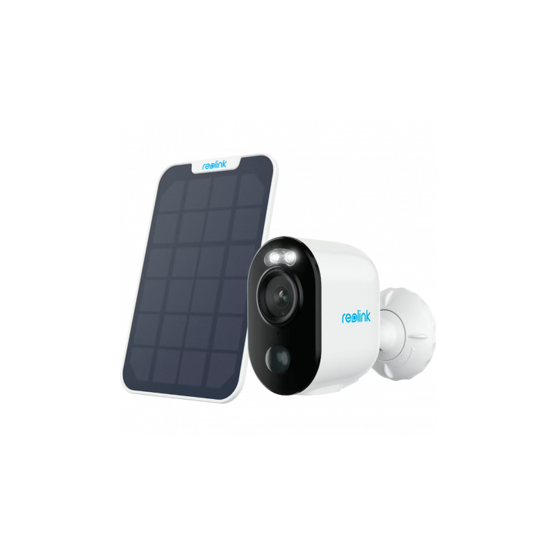 Cámara WiFi de batería Reolink con panel solar de 3 megapíxeles, 2304 x 1296, sensor CMOS de 1/2.7 pulgadas, visión nocturna infrarroja de hasta 10 metros, ángulo de visión diagonal de 100 grados, zoom digital 6X, detección inteligente por sensor PIR para humanos y vehículos, sirena integrada, audio bidireccional con micrófono y altavoz, compatible con Amazon Alexa y Asistente de Google, almacenamiento en tarjeta MicroSD de hasta 128GB, resistente al exterior con protección IP65, batería recargable de 6000 mAh, incluye panel solar de 3W, comunicación WiFi a 2.4 GHz, funcionamiento de -10 a 55 grados Celsius, dimensiones 127 x 90 x 56 milímetros, peso 239 gramos.