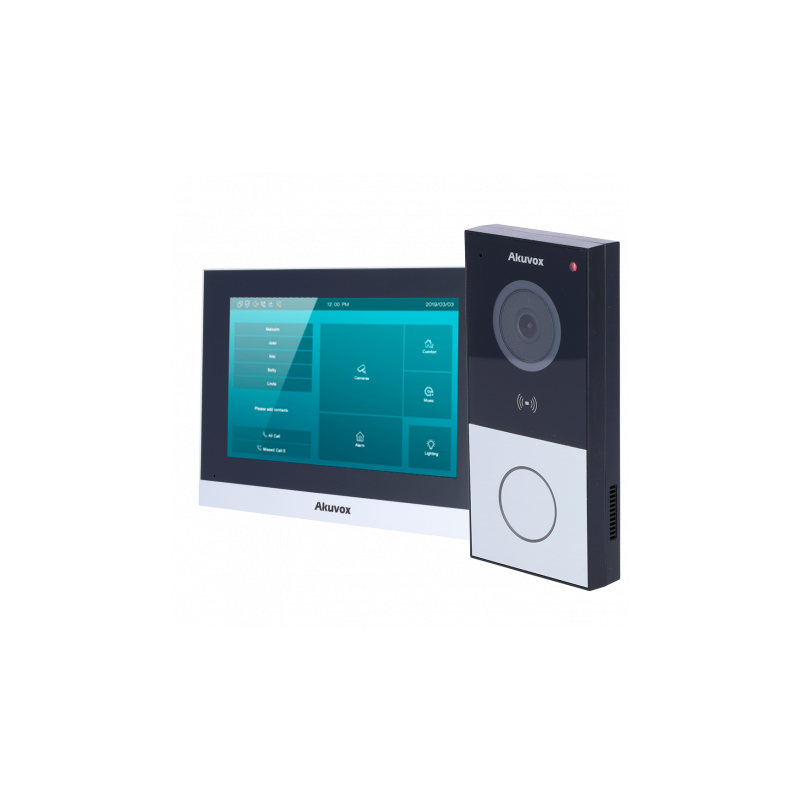Kit de videoportero Akuvox, 2 hilos y WiFi, audio bidireccional, cámara 2 MP, pantalla TFT LCD 7 pulgadas, lector MF, NFC y Bluetooth.