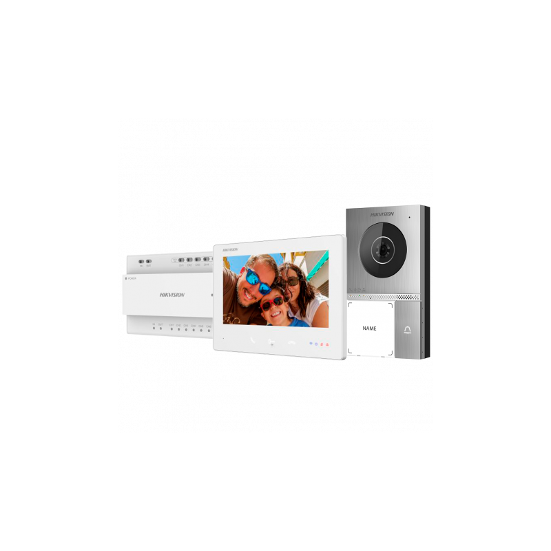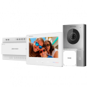 Kit de videoportero Hikvision, tecnología 2 hilos HD, cámara 2 Mpx, WiFi, pantalla 7 pulgadas, IP65, IK08, para montaje en superficie.