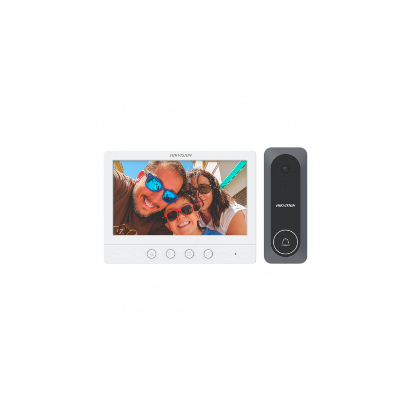 Kit de videoportero Hikvision con tecnología analógica de 4 hilos, formato superficie, diseñado para instalaciones Plug & Play. Incluye una placa exterior con cámara HD TVI y un monitor interior de 7 pulgadas, permite añadir hasta 2 monitores adicionales, la comunicación y conexión se realiza mediante 4 hilos, incorpora soporte de superficie, alimentador y cable de 5 metros.