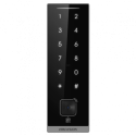 Lector de acceso Hikvision, tarjeta MF DESFire, QR y PIN, para exterior IP66, Wiegand 26 o 34 y RS485, alimentación 12 VDC.